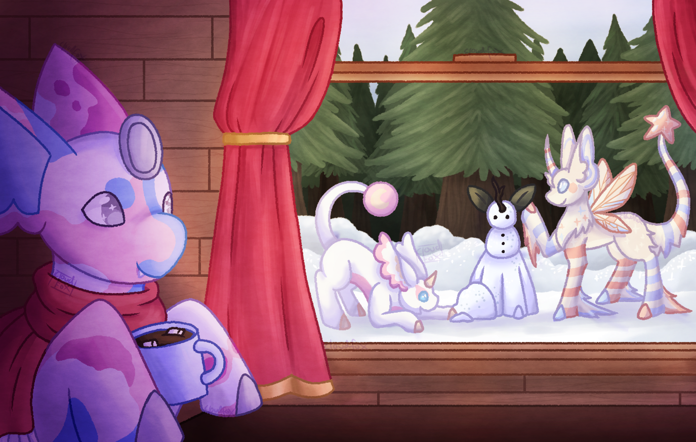A cup of cocoa on a winter day while watching the others make a snow-orin outside!